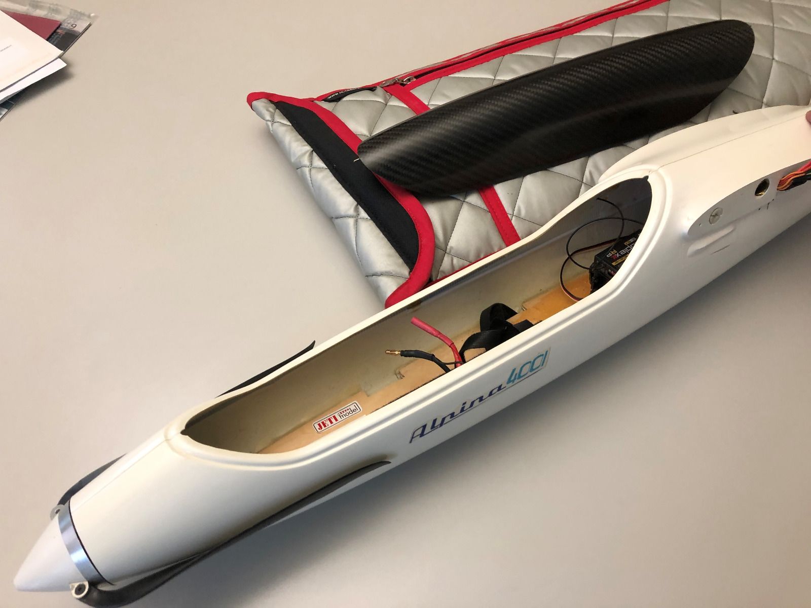 Peter Baur (Teckpokalgewinner und Inhaber Baur Modellbau) hat mir das Modell komplett aufgebaut und flugfertig übergeben. Das Modell hat nur 33 Flüge gemacht, ist sehr gepflegt und so gesehen quasi neuwertig. Kleinere Gebrauchsspuren sind natürlich bei genauer Betrachtung zu finden. Du kannst die Alpina aus erster Hand übernehmen. Sie fliegt ausgezeichnet und hat keine Schäden.
