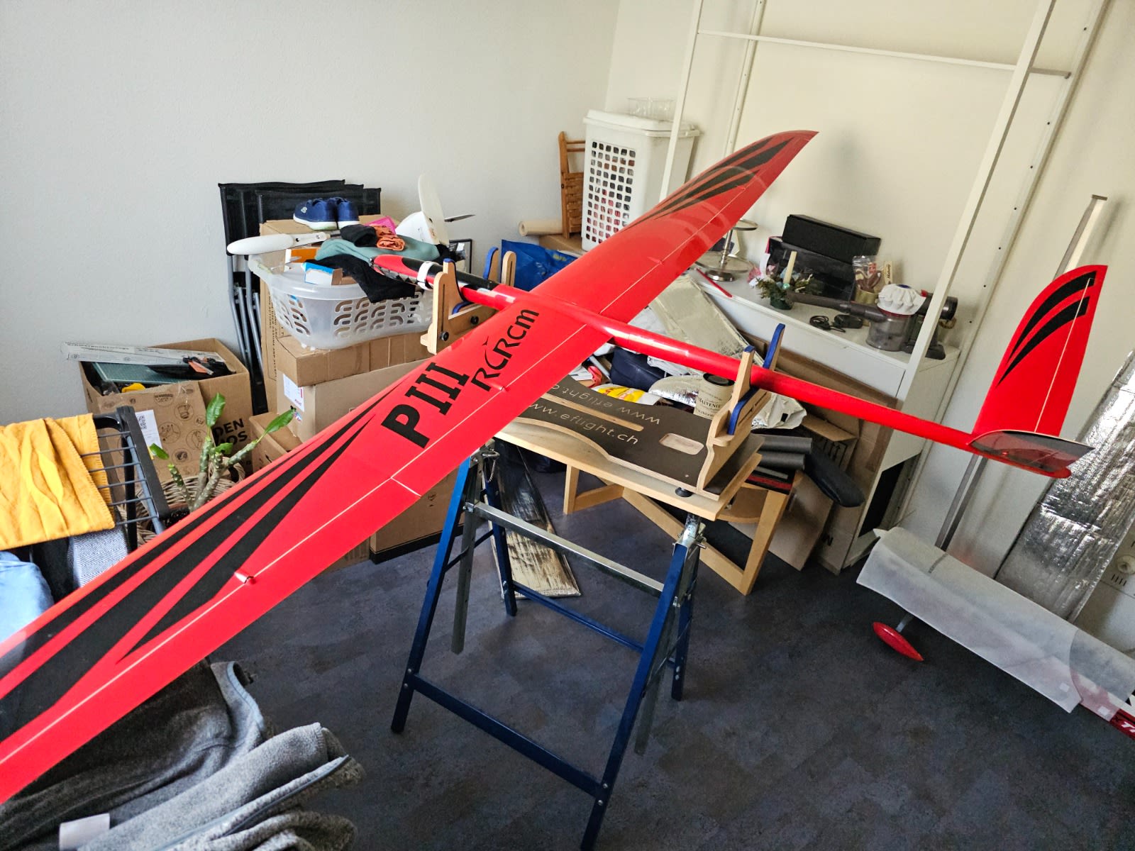 RCRCM Predator III GFK/CFK, Rot/Schwarz, 2965 mm komplett ausgestattet. Sauber gebaut und ohne Schäden. Einzig einige kleine Dellen vom Transport in einem Flügel.