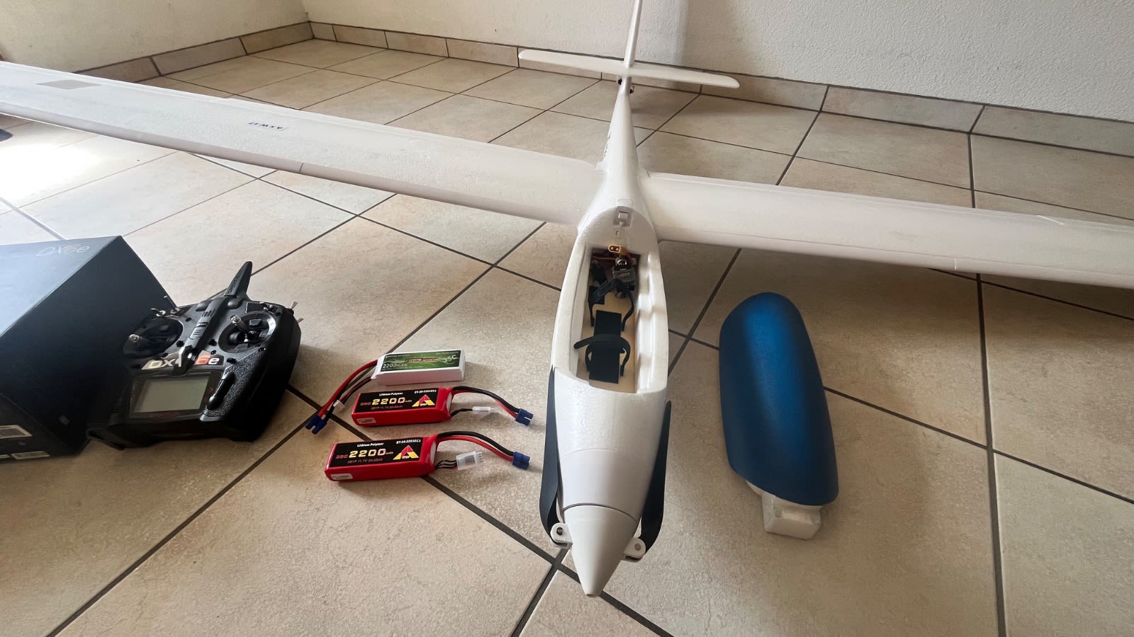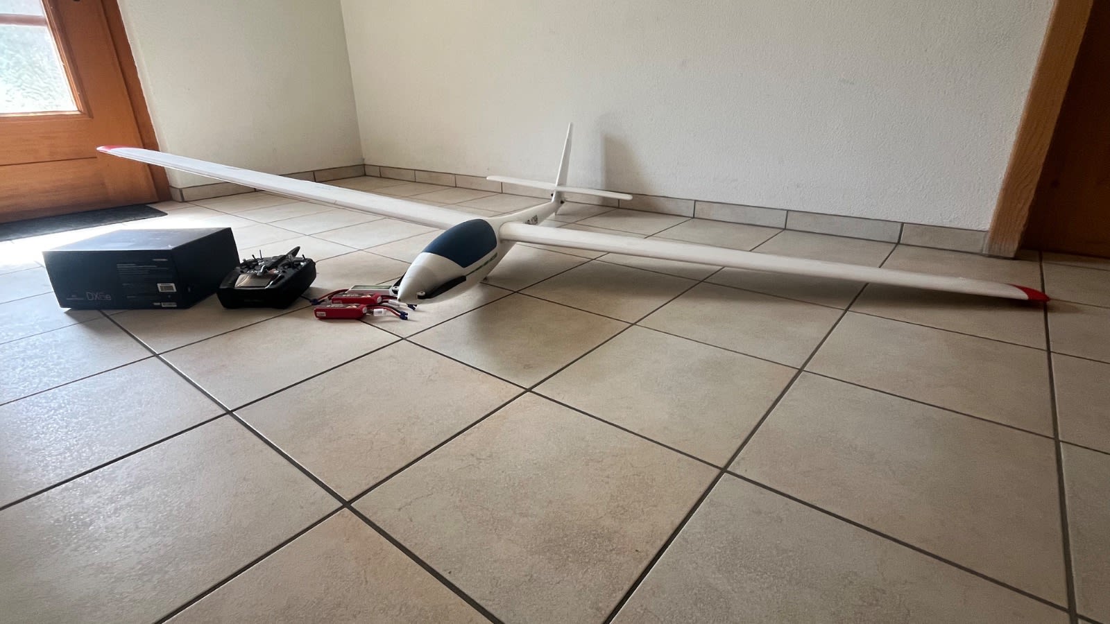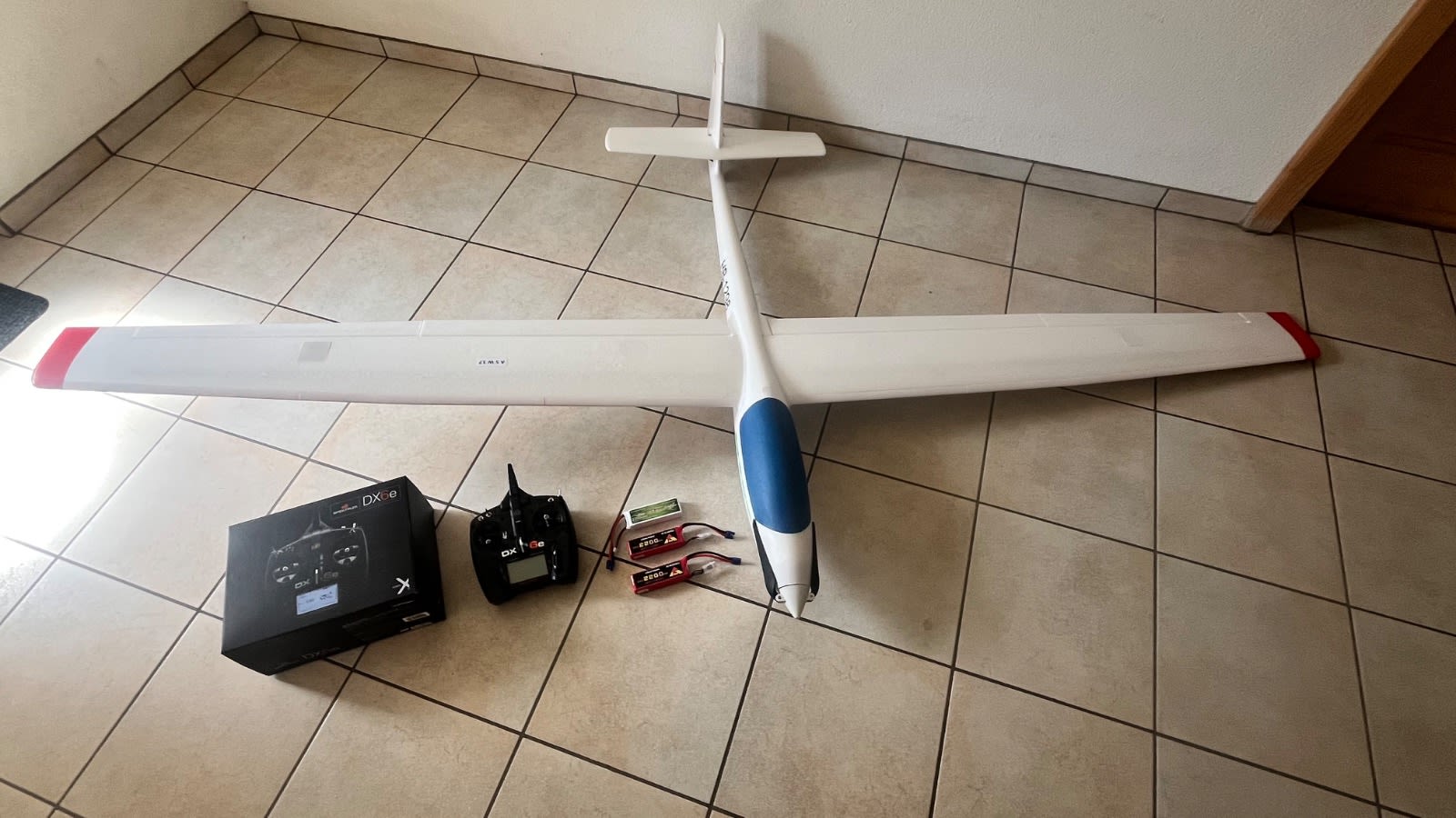Verkaufe mein Motorsegelflugzeug Asw 17 mit Fernsteuerung Dx6e, Empfänger und 3 passenden Akkus.