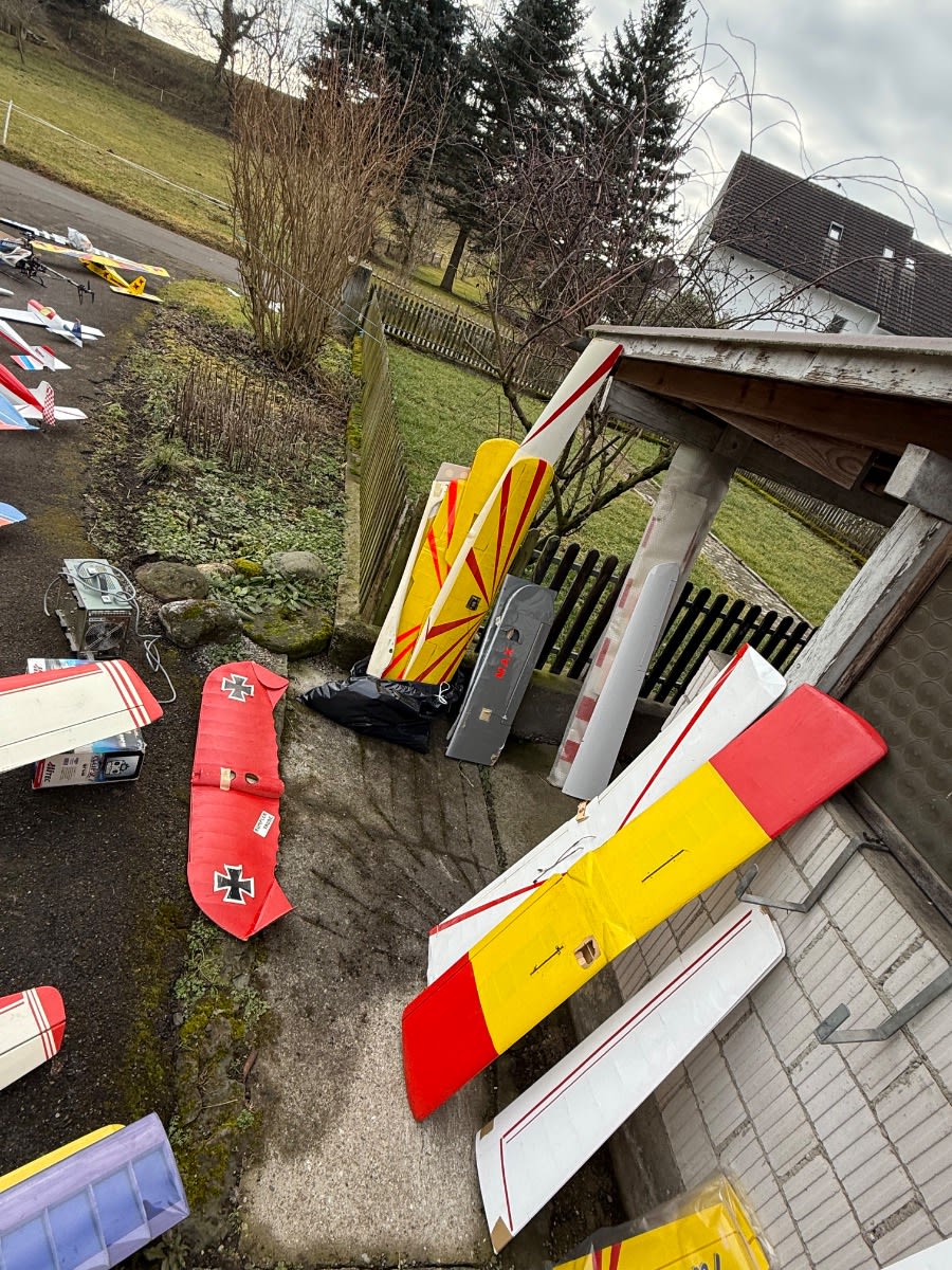 Ich verkaufe eine umfangreiche Sammlung aus dem Modellflug-Bereich, ideal für Bastler, Sammler oder Modellbau-Enthusiasten. Der Verkauf erfolgt komplett als Konvolut im Rahmen einer Ricardo-Auktion. ✈️ Inhalt der Auktion (gemäss Fotos): • Ca. 10 Modellflugzeuge (verschiedene Grössen & Typen) • Mehrere Segelflugzeuge • 1 grosser Helikopter TREx 600CF • 1 kleiner Helikopter (verpackt) Blade 400 3D • Ca. 7 ältere Sender / Fernsteuerungen • Viele Elektromotoren (gross & klein, diverse Typen) • Zahlreiche Ersatzteile & Zubehör • Akkus (ältere Baujahre, Zustand unbekannt) • Diverse mechanische & elektronische Komponenten ℹ️ Zustand: • Gebraucht • Teilweise älter, Zustand und Funktion nicht geprüft • Einige Modelle sind unvollständig oder reparaturbedürftig • Ideal als Ersatzteilspender oder Restaurationsobjekte ???? Verkauf & Hinweise: • Verkauf wie auf den Fotos ersichtlich • Keine Einzelabgabe • Keine Garantie oder Rücknahme • Abholung bevorzugt (aufgrund Grösse & Menge), Versand nach Absprache möglich ???? Für wen geeignet? ✔ Modellbauer ✔ Sammler ✔ Bastler ✔ Vereine / Werkstätten ✔ Ersatzteiljäger