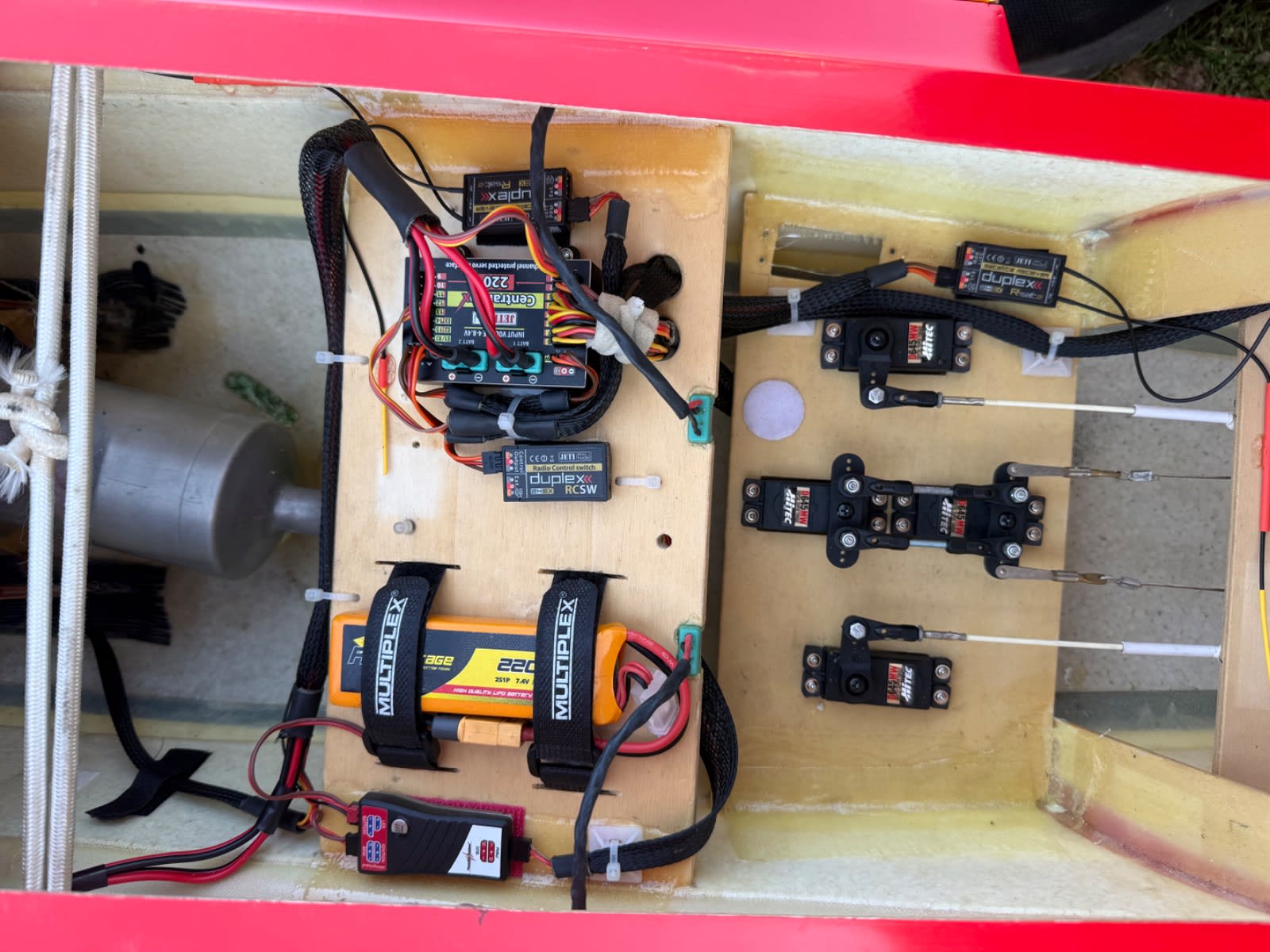 Elektronik: Jeti CB 220, SparkSwitch von Powerbox, 7x Hitec Servos D645MW alles neuwertig. Akkus 3x RB Voltage 2200mAh