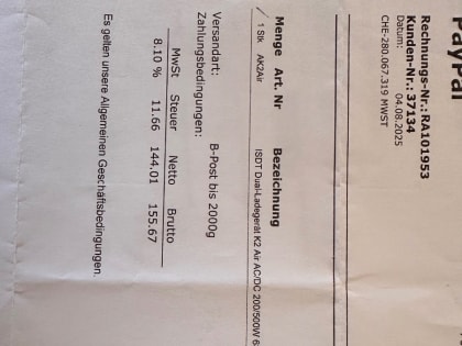 Sehr gutes Gerät im Neuzustand. Hat eine zusätzliche AC Stromversorgung siehe auch Fotos. Gekauft August 2025, Beleg vorhanden und Garantie sollte so funktionieren.
